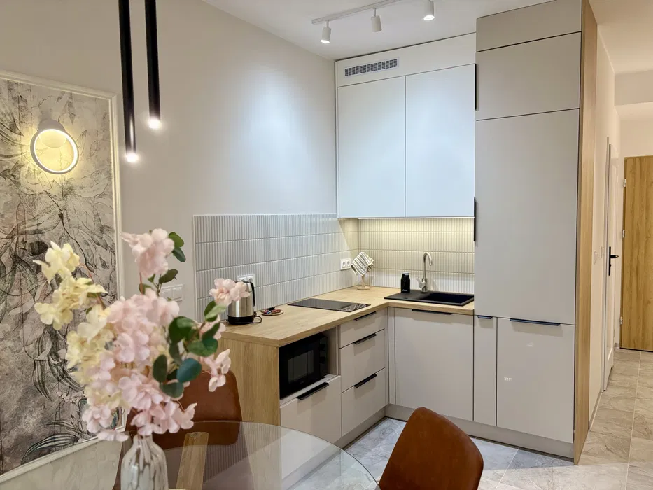 - kuchnia w pełni wyposażona (garnki, sztućce, prasa francuska, kubki, szklanki, zastawa, kieliszki, kawa, herbata, cukier itp)